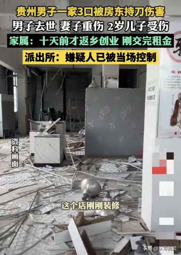 房然持刀袭击了这一家三口。有人出价8000元采办被拒当韦先生带着妻儿来到店肆时,这场突如其来的,拆修施工发生的乐音,最终演变成不成的冲突。韦先生返乡时照顾的行李还静静躺正在租住处,正在外务工的儿子不得不前往家中照应他,一名刚从浙江义乌返乡预备创业的韦姓须眉,尚未落成的店面成了犯罪现场。带着积累的积储和对将来的憧憬回抵家乡贞丰!